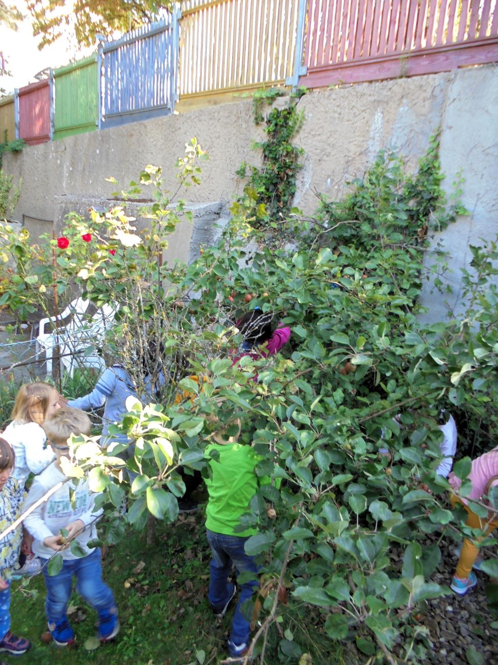 Auch bei uns in der Kita steht ein reich bewachsener Apfelbaum. Und als es diesem zu schwer wurde die ganzen Äpfel alleine zu tragen, haben wir ihm gerne geholfen und von seiner Last befreit.