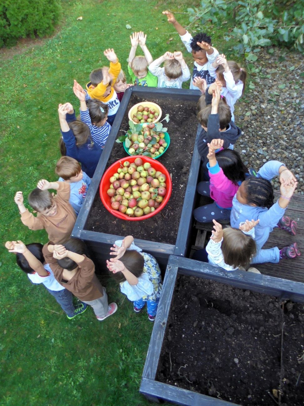 Die Kinder haben die vielen großen und kleinen Äpfel vom Baum gepflückt. Doch damit nicht genug: gemeinsam mit den Erzieherinnen wurden die Äpfel in den darauffolgenden Tagen von den Kindern zu vielen leckeren Köstlichkeiten verarbeitet.